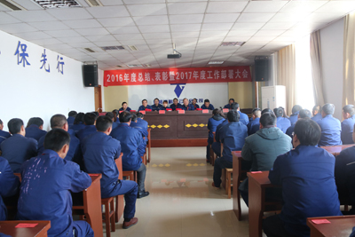 2月11日下午,为发扬成绩,鼓励先进,同时号召公司各级组织和全体员工向先进学习,努力进取,开创新局面,创造新成就,实现新跨越,染料连云港分公司隆重召开2016年度总结表彰暨2017年度工作部署大会。会议对2016年度工作中涌现出来的两个先进车间、10个先进班组、52名先进个人进行了表彰奖励,获奖车间、班组、个人代表分别上台做精彩发言。受表彰的先进集体代表、先进个人及车间主任以上管理人员,共100多人出席了会议,14时整,在欢快的迎宾曲中,公司班子成员陆续主席台就坐,会议由总经理助理、行政人事部部长许玲亚主持。