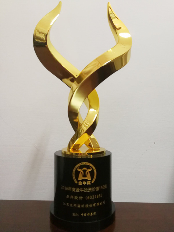 “金牛投资价值150强”这一大奖,是公司自2014年上市以来获得的^高荣誉,表明公司在资本市场的出色表现受到了广大投资者及评审^的普遍认可,亦是对公司管理团队不懈努力的高度赞誉。未来,亚邦股份将一如既往,持续增强企业自身竞争力,竭尽全力创造客户认可的有价值的产品和服务。