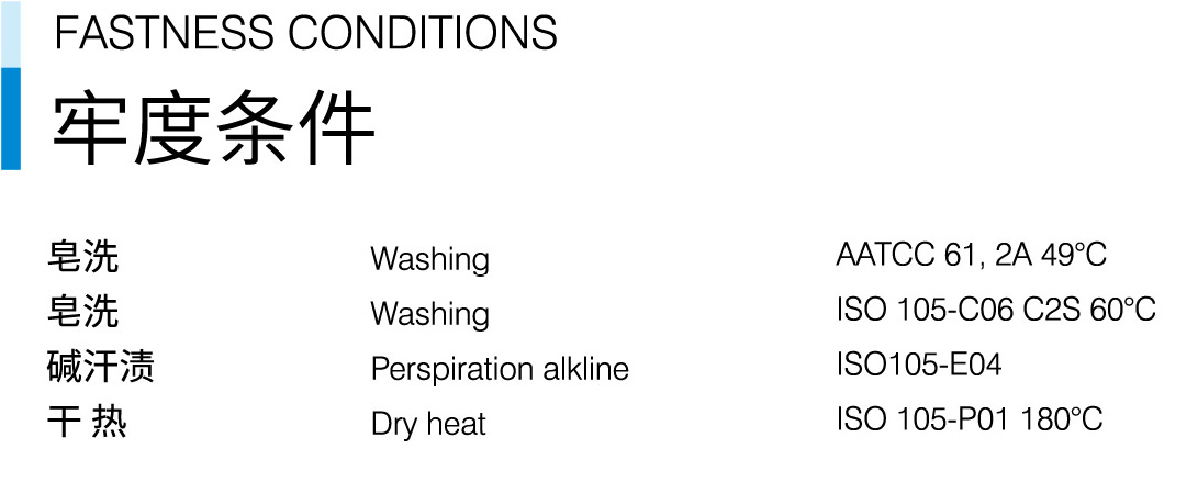 4. 适配高温高压染色、热熔染色等主流工艺,染色均匀性佳,色光鲜亮饱满。