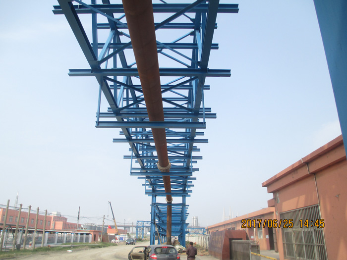 染料连云港分公司积极响应省政府发出的《“两减六治三提升”专项行动方案》(简称“263”),将措施落到实处。6月底,积极引进园区亚邦供热公司等兄弟企业的蒸汽管道,关闭三台20吨蒸汽炉,减少煤炭的使用量,为园区清洁生产、节能降耗做出了表率。(图为能源管架途经染料连云港分公司外围)